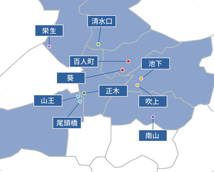 ▼名古屋市北部(中区・中川区・東区・北区・千種区・昭和区)